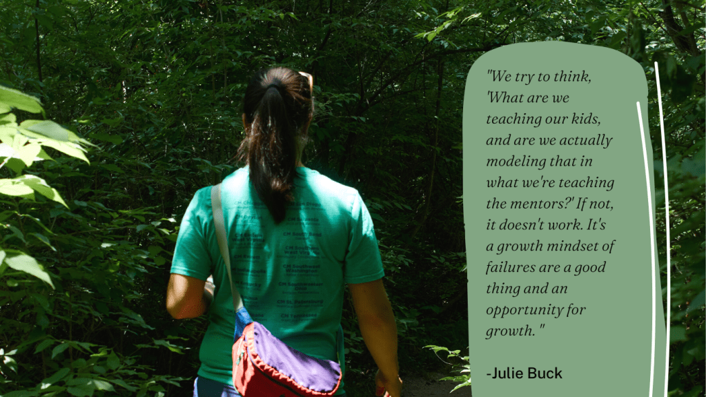 We try to think, what are we teaching our kids, and are we actually modeling that in what we’re teaching the mentors? If not, it doesn’t work. It’s a growth mindset of ‘failures are a good thing and an opportunity for growth!’ If we don’t do that with our camp, it doesn’t set anyone up for success. Same thing with being vulnerable with our emotions. The kids are learning what it looks like to safely reveal where they’re at to themselves and others, so we want to create a safe space for our mentors to do that also, along with the boundaries of what’s appropriate to share, when, and with who, and as we go through that process, everybody benefits.