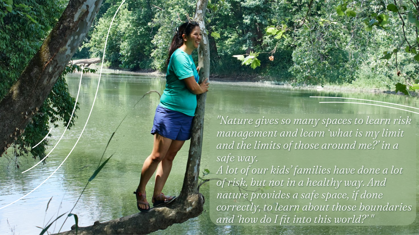 Nature gives so many spaces to learn risk management and learn ‘what is my limit and the limits of those around me?’ in a safe way. A lot of our kids’ families have done a lot of risk, but not in a healthy way. And nature provides a safe space, if done correctly, to learn about those boundaries and ‘how do I fit into this world?’